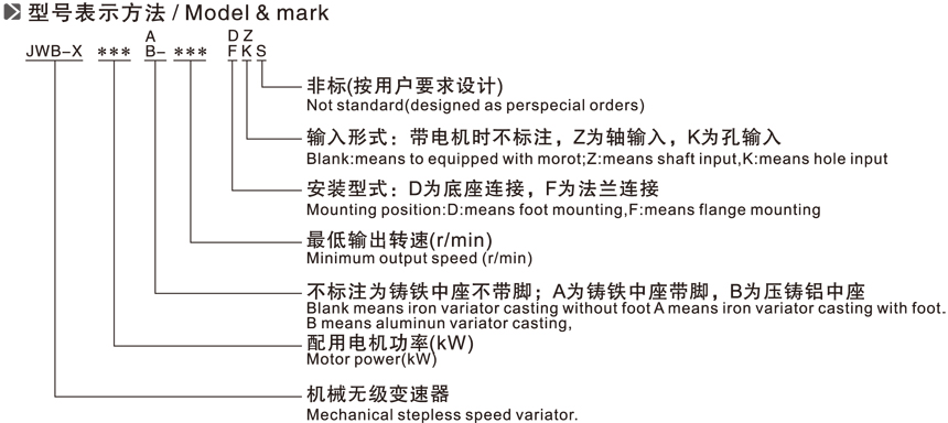 JWB-X系列無級變速機(jī)型號表示方法