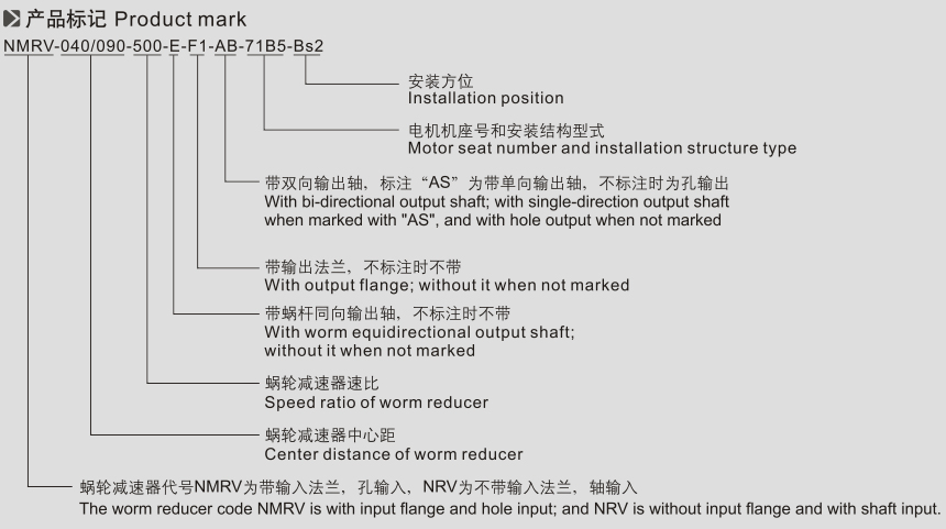 MB無級變速機標記有:NMRV-040/090-500-E-F1-AB-71B5-Bs2