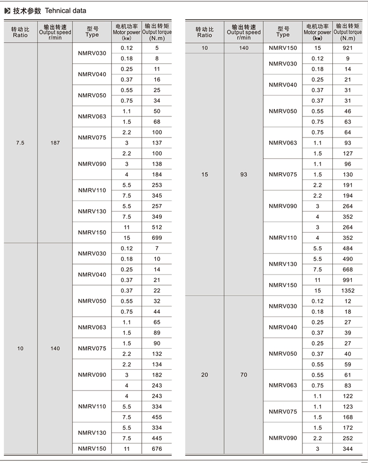 4、與RV、NMRV、NRV蝸輪蝸桿減速機配套的電機必須合適在低溫環(huán)境中工作;
